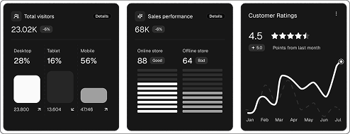 Dashboard & Application Blocks are a collection of UI blocks that are designed to help you create stunning and user-friendly dashboard and app.