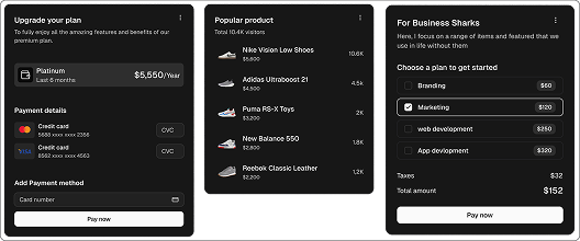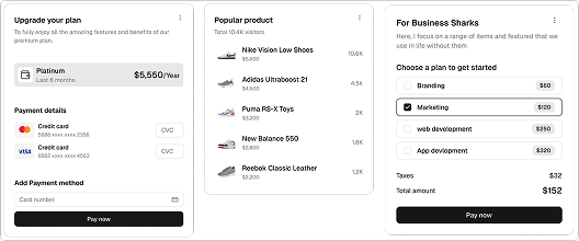eCommerce UI Blocks are a collection of UI blocks that are designed to help you create stunning and user-friendly eCommerce interfaces.