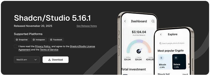 A complete collection of free Shadcn Studio blocks for marketing, ecommerce, dashboards, and modern app interfaces.