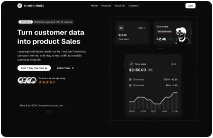 Explore 700+ premium & free Shadcn UI blocks to speed up your development. Fully customizable, easy to use, and dark mode ready.