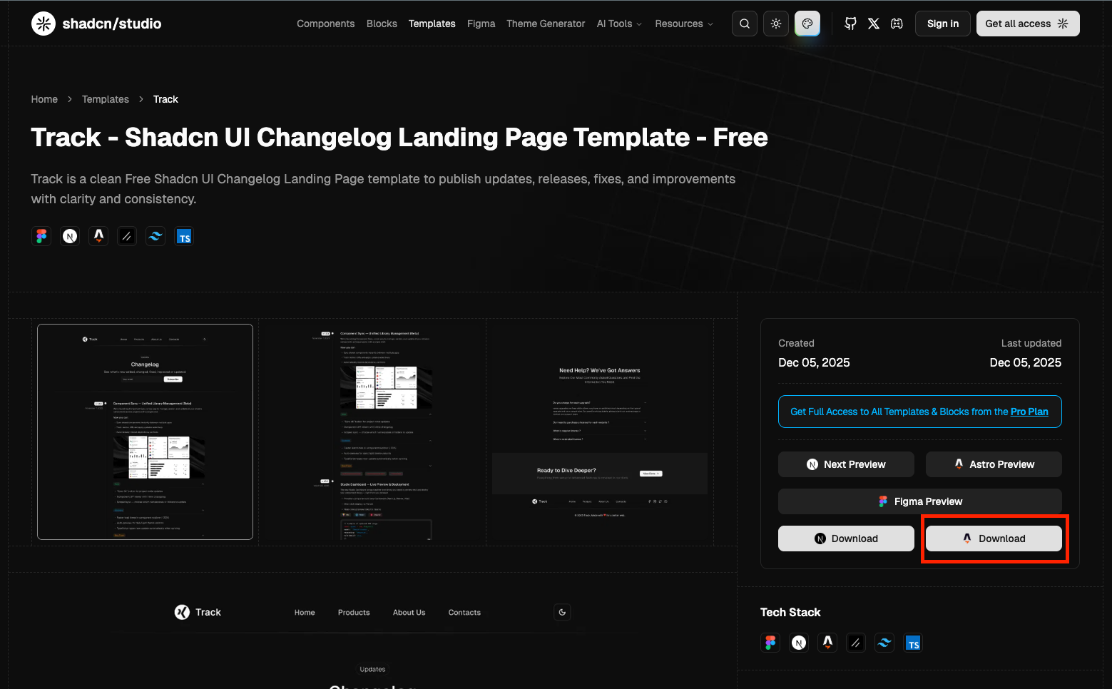 To access the shadcn/studio Template source code for Astro, follow these steps: