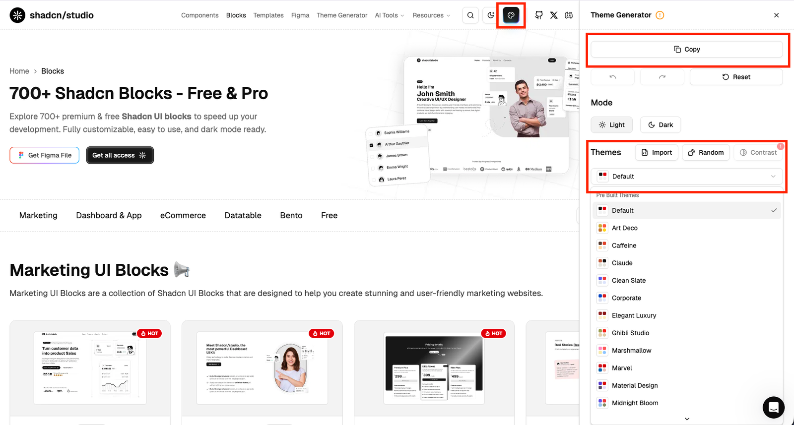 src/components/shadcn-studio/blockstosrc/components/blocks. - Copy the corresponding data from
