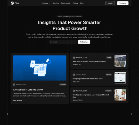 Flow is a clean and conversion-focused SaaS landing page built with Shadcn UI. It helps SaaS products communicate value, performance, and outcomes clearly. The layout supports feature discovery, trust-building, and pricing clarity. It suits SaaS teams focused on growth, retention, and scale.