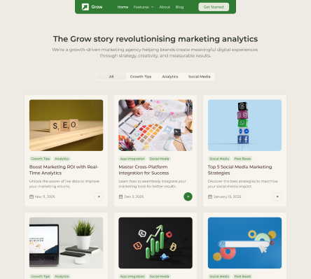 Grow is a modern Shadcn UI Marketing Landing Page template to present analytics, insights, and growth tools with a clean, conversion-ready layout.